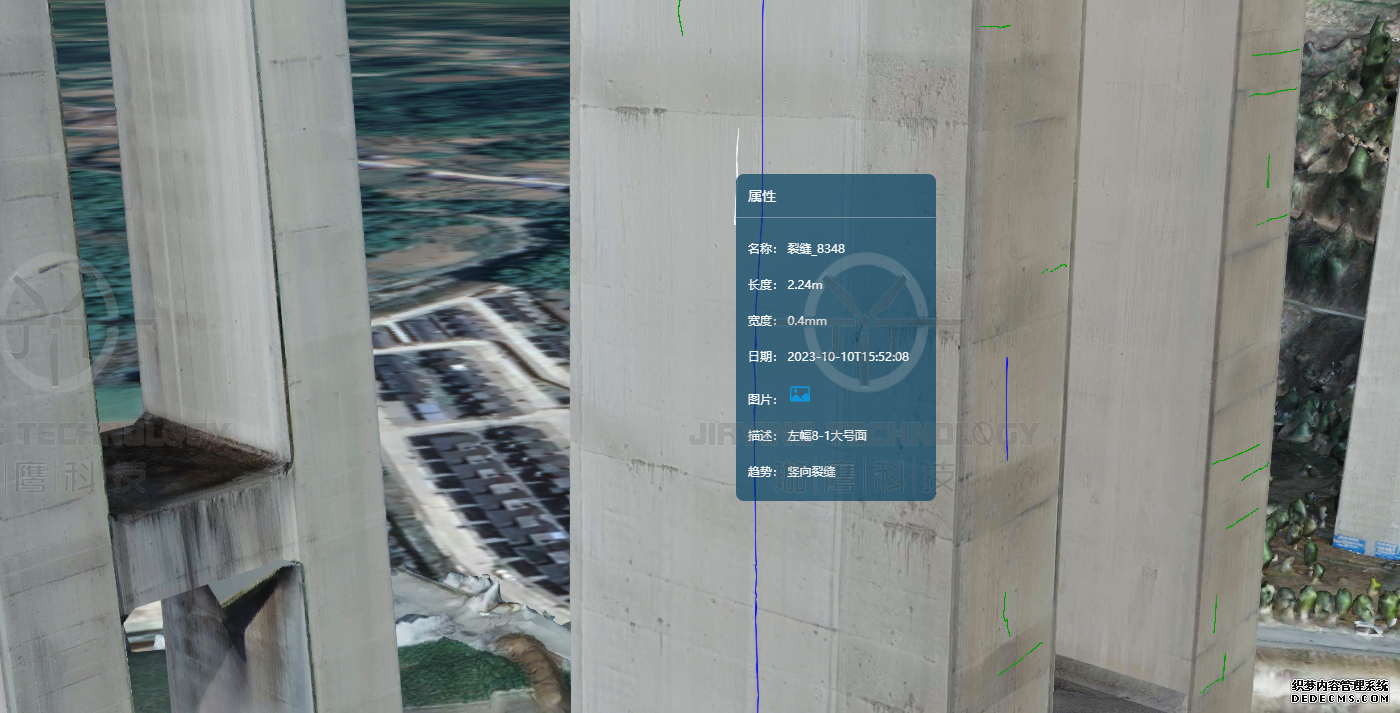 珈鷹自主開發GIS+BIM云平臺,可以方便業主實時查看三維立體模型,同時提供缺陷的準確定位以及詳細信息標注,能夠進行多期數據比對,直觀展示缺陷演化趨勢。